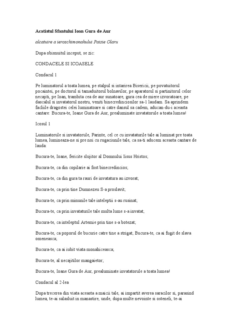 Rugaciune Ortodoxa Acatistul Sfantului Ioan Gura De Aur