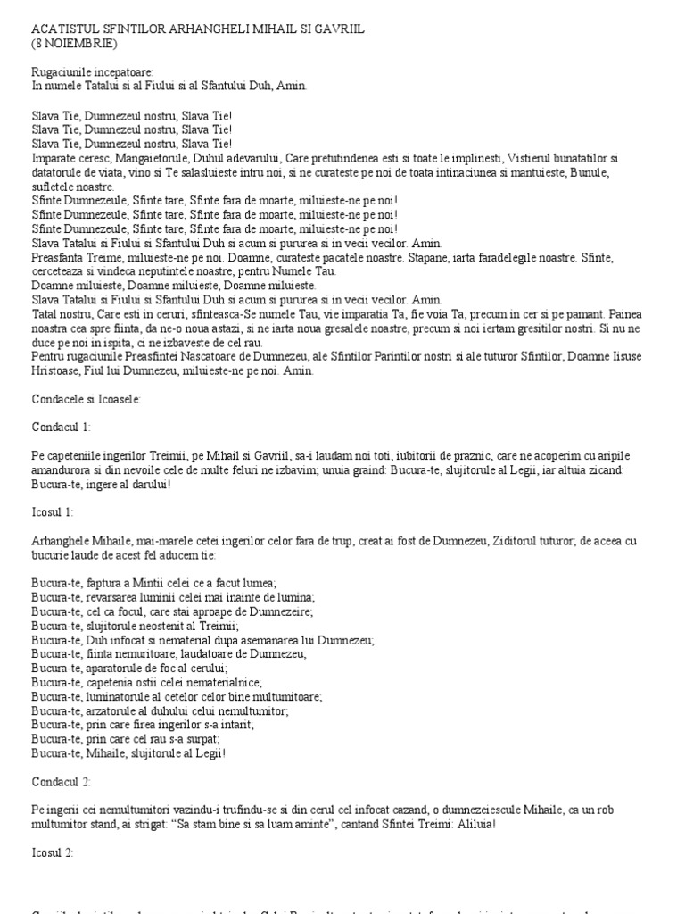 Acatistul Sf Mihail Si Gavril Scris