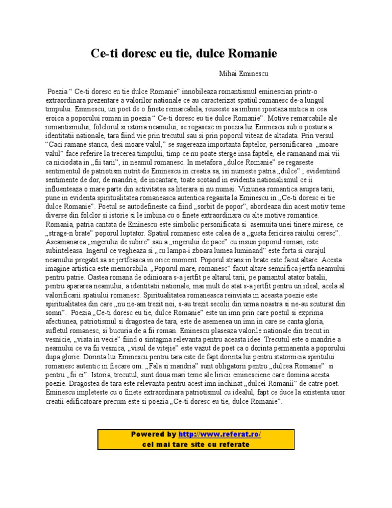 Ce Ti Doresc Eu Tie Dulce Romanie De M Eminesc Rezumat