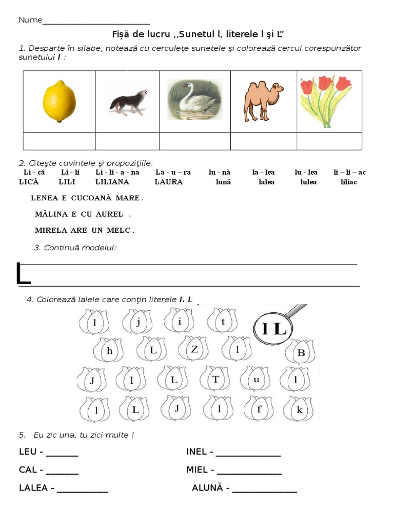 Fisa De Lucru Sunetul Si Literele L L