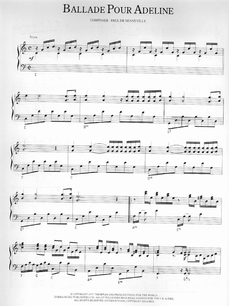 Ballade Pour Adeline Sheet Music Notes Richard Clayderman Chords Download Ballad Notes Piano Pdf Printable 47371