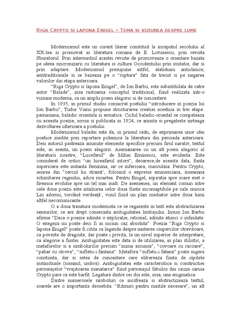 I Barbu Riga Crypto Si Lapona Enigel Modernism Interbelic Riga Crypto I Lapona Enigel Ion Barbu Schem I Context Publicat Iniial N 1924 Integrat Apoi Course Hero