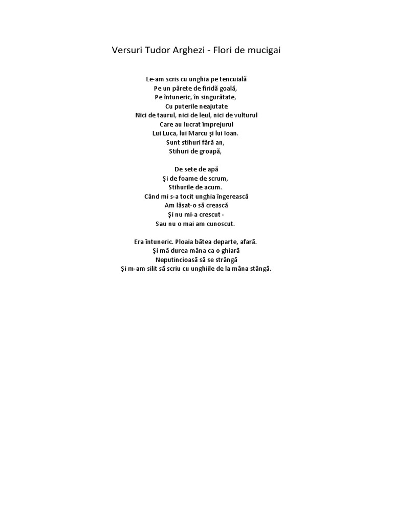 Versuri Tudor Arghezi Flori De Mucigai Docx